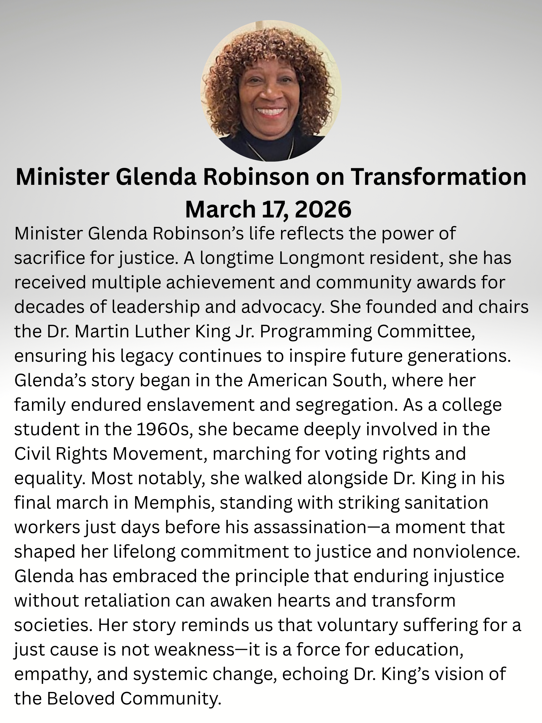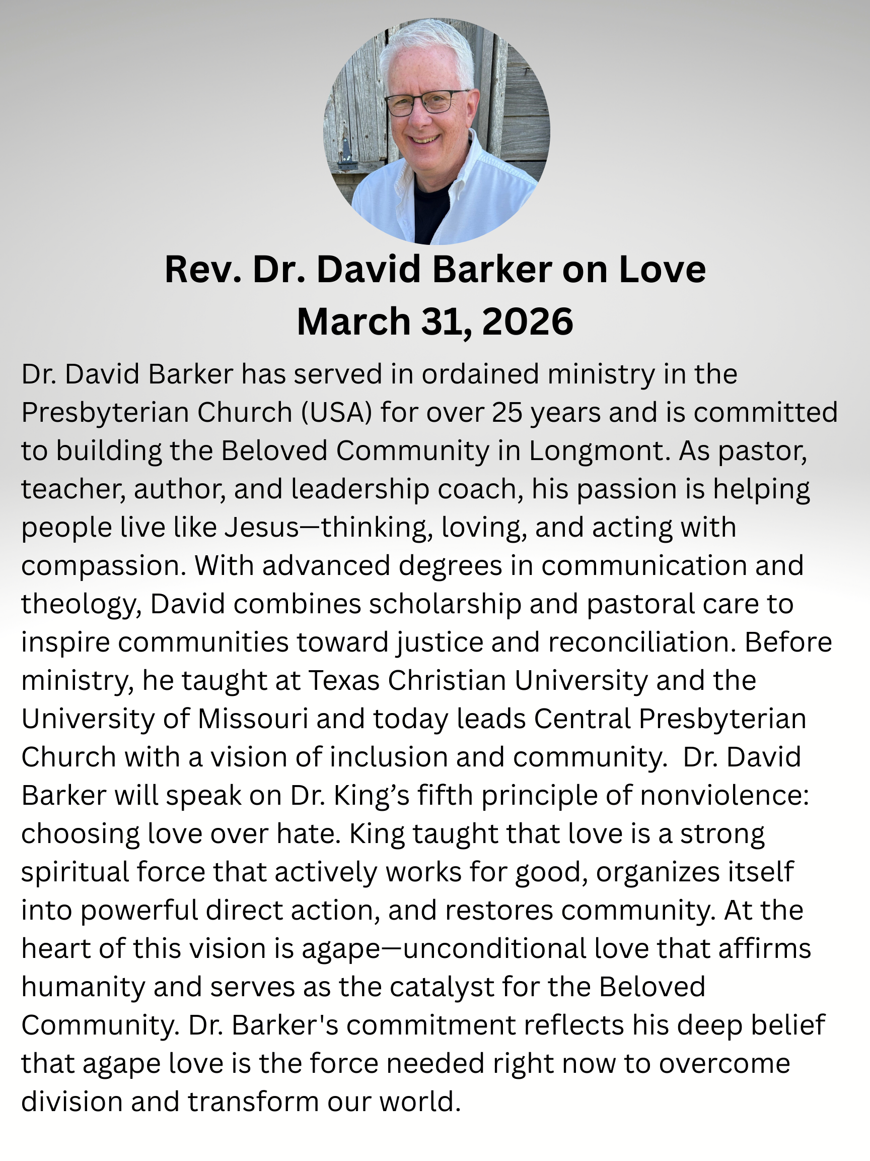 Our journey toward a more just and loving world began on Sunday, September 14, with a powerful sermon from Rev. Dr. David Barker. He invited our community to join our friends at Habitat for Humanity of the St. Vrain Valley in their Building Beloved Community initiative. It is a call to action rooted in Dr. Martin Luther King, Jr.'s powerful words: "Justice at its best is love correcting everything that stands against love.”